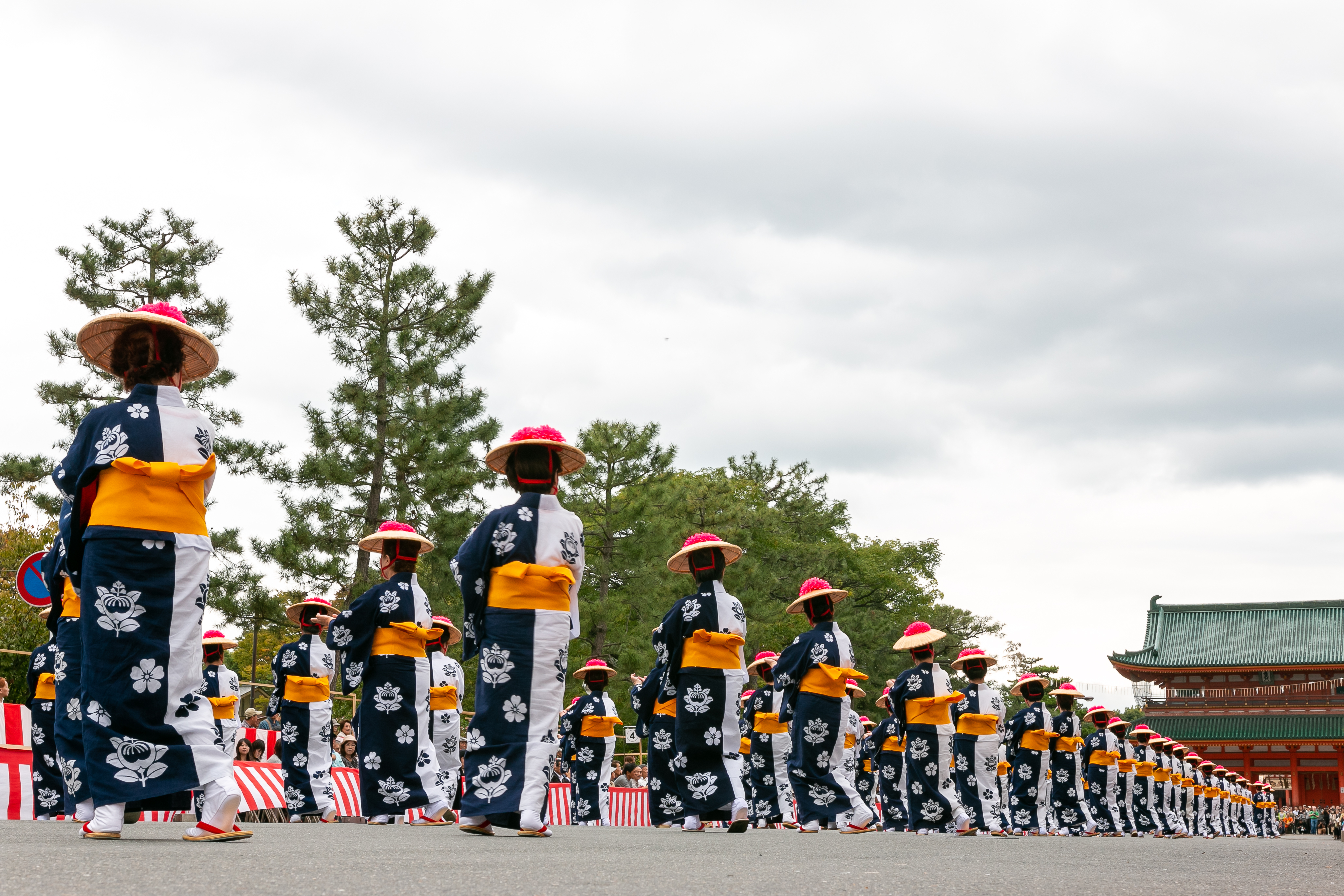 上千人身著象徵京都各時代的華麗服飾,浩浩蕩蕩地走在大馬路上,整座城市彷彿穿越時空重回京都的盛世輝煌。與葵祭以及祇園祭齊名京都三大祭典的時代祭,為了喚醒京都過往繁盛的首都記憶,以倒敘時代的遊行隊伍,引領群眾從百年前的明治維新回到千年前的平安時代,重現京都各個時代的繁榮昌盛。