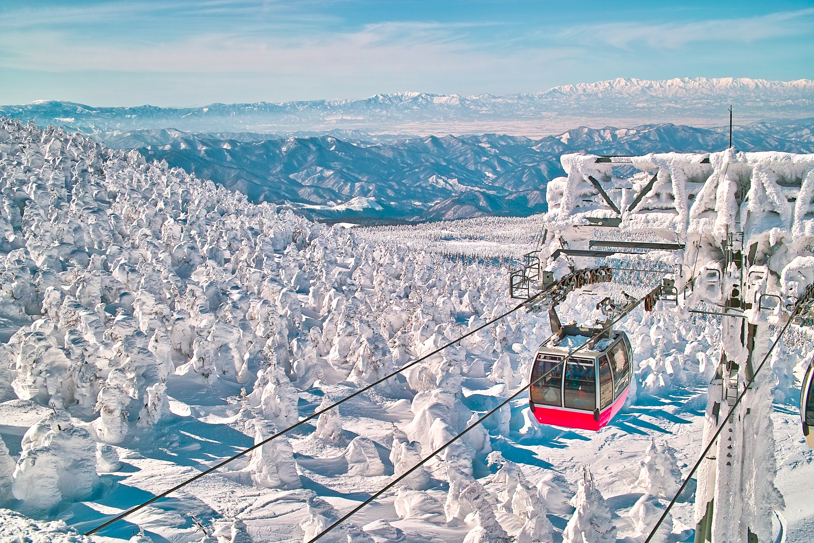 山形最壯觀的冬季景象,莫過於藏王的樹冰。強風與水氣在零下環境中反覆堆積,形成高達數公尺、形似巨型怪物的雪怪群,是世界少數地區才能看到的自然奇景。旅客可搭纜車直達山頂,在雪白高原中欣賞極地般的視野。每年一至三月夜間點燈期間,更增添夢幻氣氛。